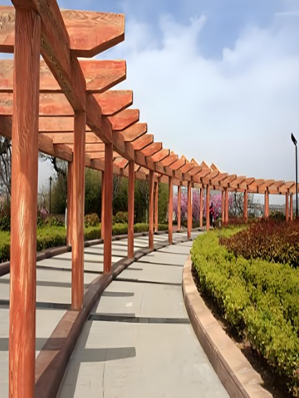 木制長廊具有自然、溫馨的質(zhì)感,能夠很好地融入自然環(huán)境,提升景觀的整體美感。木材的紋理和質(zhì)感也能增添歷史和文化底蘊。